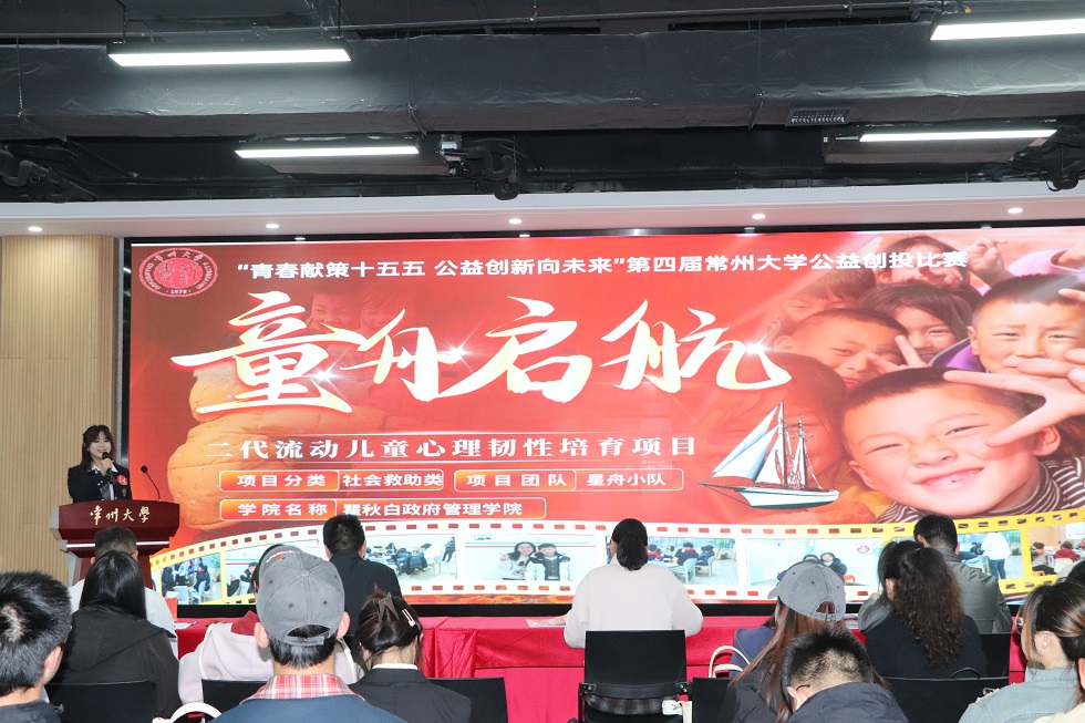 为厚植青年大学生公益情怀,培养创新实践能力,4月22日,由常州大学团委主办,斗球app 承办的常州大学第四届公益创投大赛决赛在立言楼458多功能厅顺利举办。斗球app 党委副书记林娜,常州大学团委副书记董译文,斗球app 社工系专业教师王占国,斗球app 学工办主任、团委书记王非,辅导员张剑担任评委。现场百余名学生观摩了本次比赛。